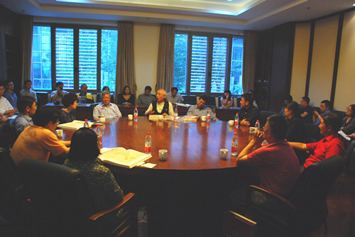西域历史语言研究所所长沈卫荣教授主持。乌云毕力格教授介绍了本书的来龙去脉和国内外蒙古地图研究概况以及本书所公布的清末民初蒙古手绘地图的价值。接着,与会专家学者就蒙古游牧图价值和本书学术意义进行了热烈发言。