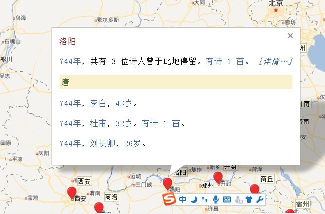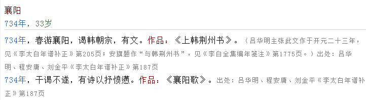 称李白是“诗人中最资深的驴友”、“驴友中最杰出的诗人”真是一点也不为过。18个省、80多座山,729年,李白在安陆白兆山开始隐居。后又在桃花岩“构石室,开山田,日以读书、赋诗、弹琴、饮酒为事,一似绝意仕进者。” 726年,李白在襄阳结识了著名的山水田园诗人孟浩然。