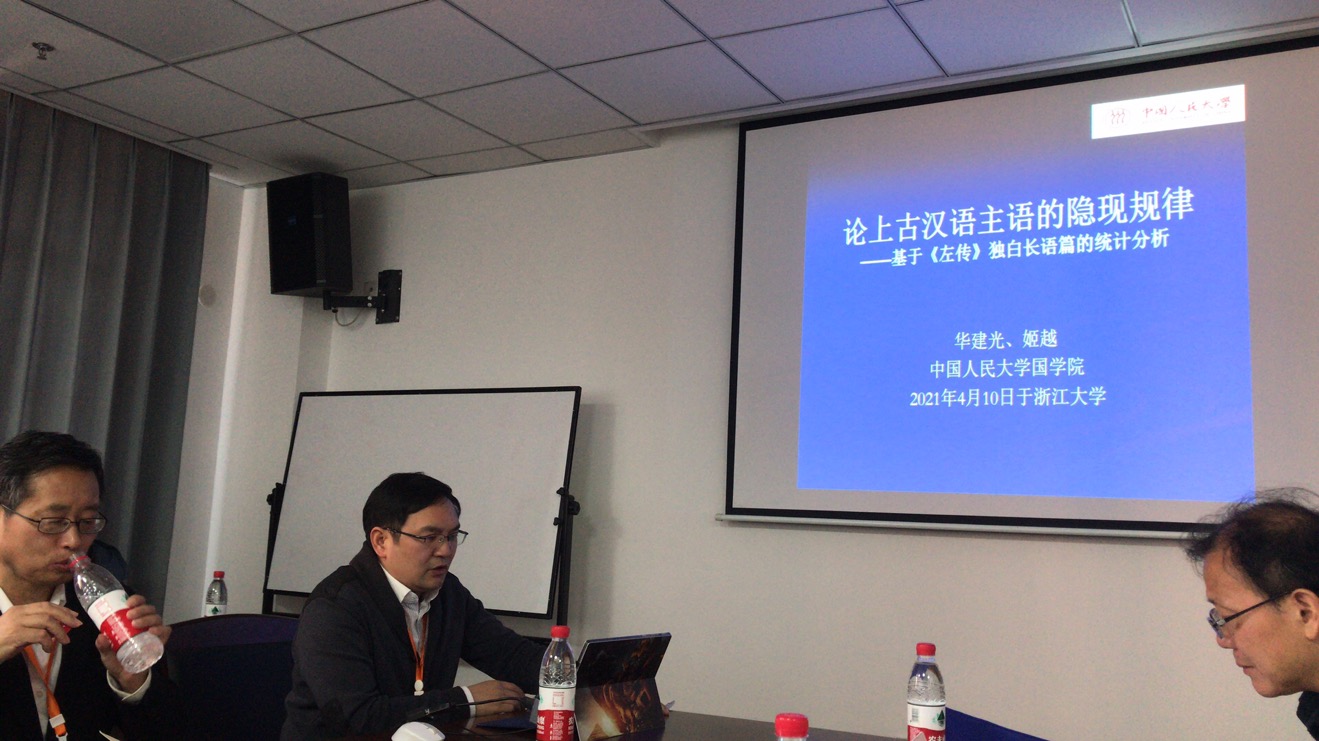 本届年会于4月10日上午和4月12日上午举行了两场共计八个大会报告,以及21个小组报告。禁漫app 华建光副教授在4月10下午第一小组宣读了与姬越合作的《论上古汉语主语的隐现规律——基本<左传>独白长语篇的统计分析》一文。文章用统计学方法分析了上古汉语主语隐现三大制约因素的权重及共同作用方式,构建了区分度和拟合度都较好的多因素主语隐现分析模型,并对一些极端离散语例进行了专门讨论,以揭示其他影响因素。与会学者围绕该文,就“《左传》与其他语体或文类的古代文献在主语隐现上是否会有明显差异”“上古汉语与其他语言主语隐现的主要差异在哪里”等问题进行了交流讨论。