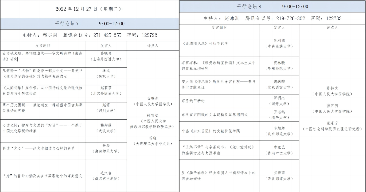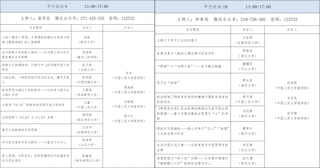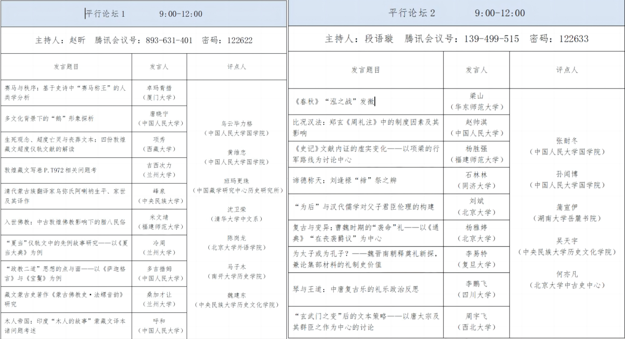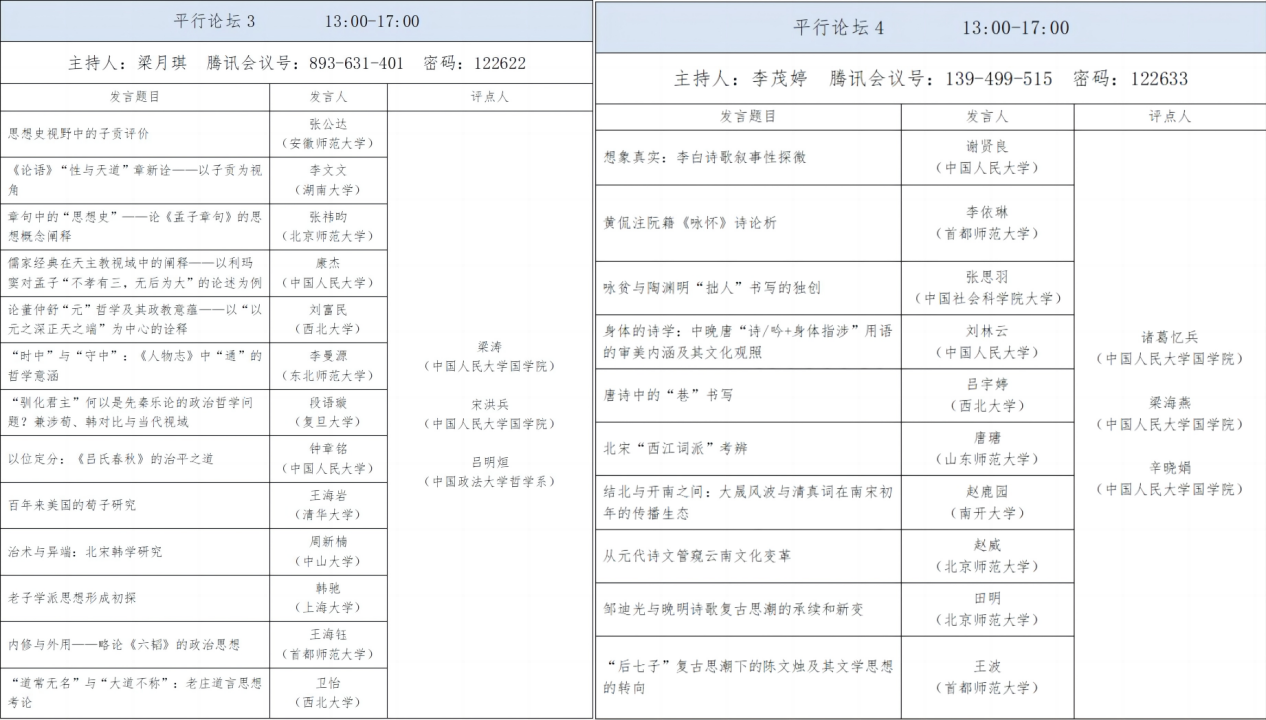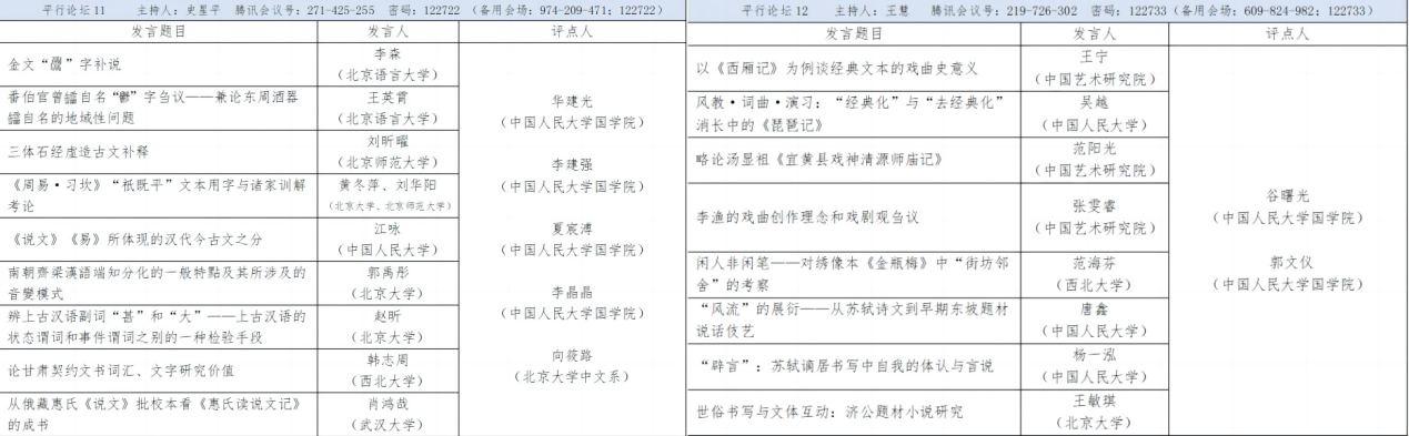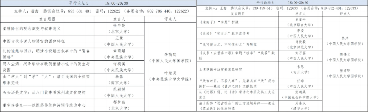 为了使所有参会学者充分交流,有所收获,本次论坛共分为12场平行论坛,每场论坛的参与人数均为10人左右,论坛主持人均由本次参会的青年学者担任。主办方为每场论坛邀请到了数位老师进行点评互动。点评老师不仅有来自禁漫app 、哲禁漫app 的老师,论坛更得到了来自北京大学、清华大学、南开大学、中央民族大学、湖南大学、中国政法大学、上海大学、大连理工大学、中国社会科禁漫app 、中国藏学研究中心等高校和研究机构的学者的大力支持。点评老师们提前阅看论文,在论坛中给出了细致深入的建议,为文章的修改完善提供了具体的方向。老师们也与青年学者们分享了自身治学的经验,勉励大家沉下心来思考,在日常的研究中进一步提升文献阅读能力,增强学术写作训练,努力打磨出精品,同时也希望青年学者们能够在自己的研究中积极探索中国古典学的具体问题与方法。点评结束后,参会学者、点评嘉宾以及线上旁听观众围绕个别问题展开了热烈讨论,每一场的点评互动环节时间均为60分钟左右,虽然也有意犹未尽的时刻,但基本实现了让所有参会者充分交流互动的初衷。