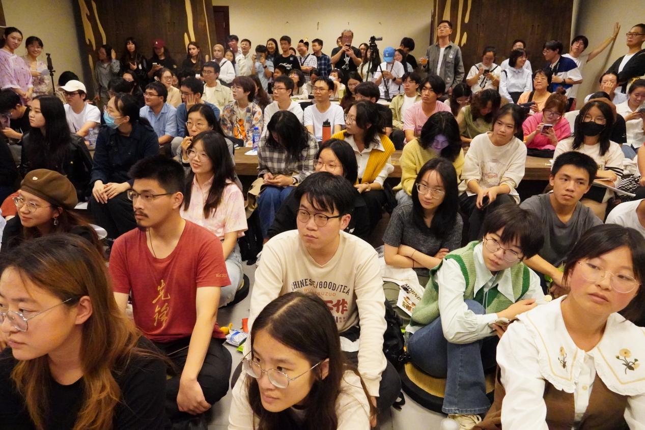 繁弦急管,八音齐奏。乐队出场,将音乐节推向了又一个高潮,演绎对国风乐曲的“一往情深深几许”。乐曲《玉兰泣》《乘上你的浪》《七十二变》《铜豌豆》和《离骚》,以默契的配合和富有表现力的演绎,牵动观众的情绪,或轻声唱和,或跟随节拍摇摆,此刻音乐成为形式,相聚同乐才是今夜的目的。