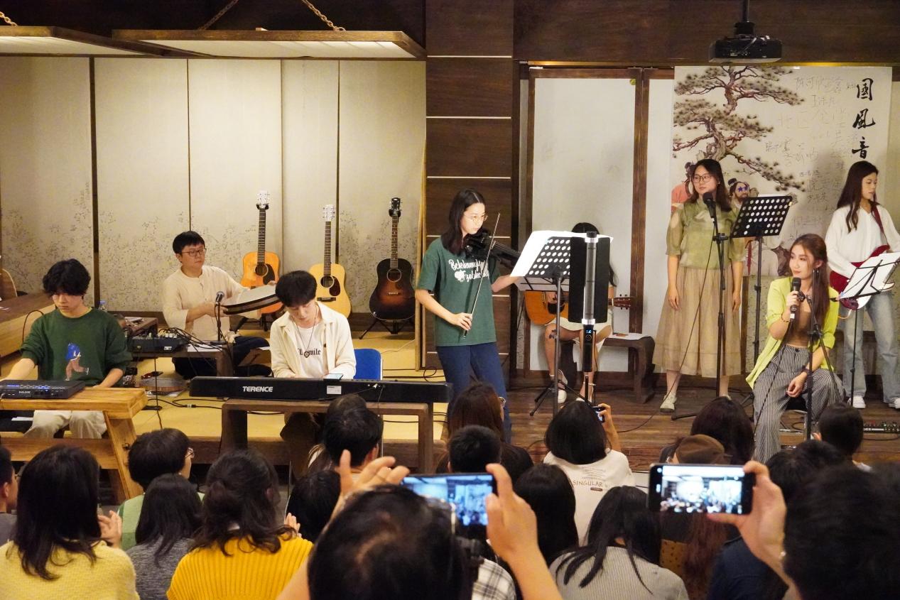 清歌一曲扬国风,金秋时节品华韵。本次国风音乐节不仅是一场爱乐人嘤鸣求友的丝竹盛宴,更是文化深情和文化自信的一次有力践行。“兴于诗,立于礼,成于乐”,乐曲里是巍巍中华之千年文化底蕴,是传统文化内核与时代艺术形式的“双向奔赴”,是文艺创作之舟与课程实践的齐头并进。在这方音乐天地中,我们用曲律和弦谱写青春华章,用国风古韵追寻情感共鸣,连接艺术古今,赓续文化薪火。期待下一次音乐节,浪漫不断,我们共赴国风河山。