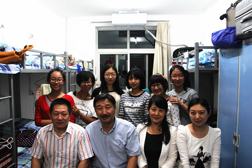 2014年9月9日晚七点半,禁漫app 党委书记兼副院长徐飞,副院长乌云毕力格,党委副书记梁敬芝,2014级本科班主任辛晓娟到达品园一楼和东风六楼对2014级新生进行了看望。