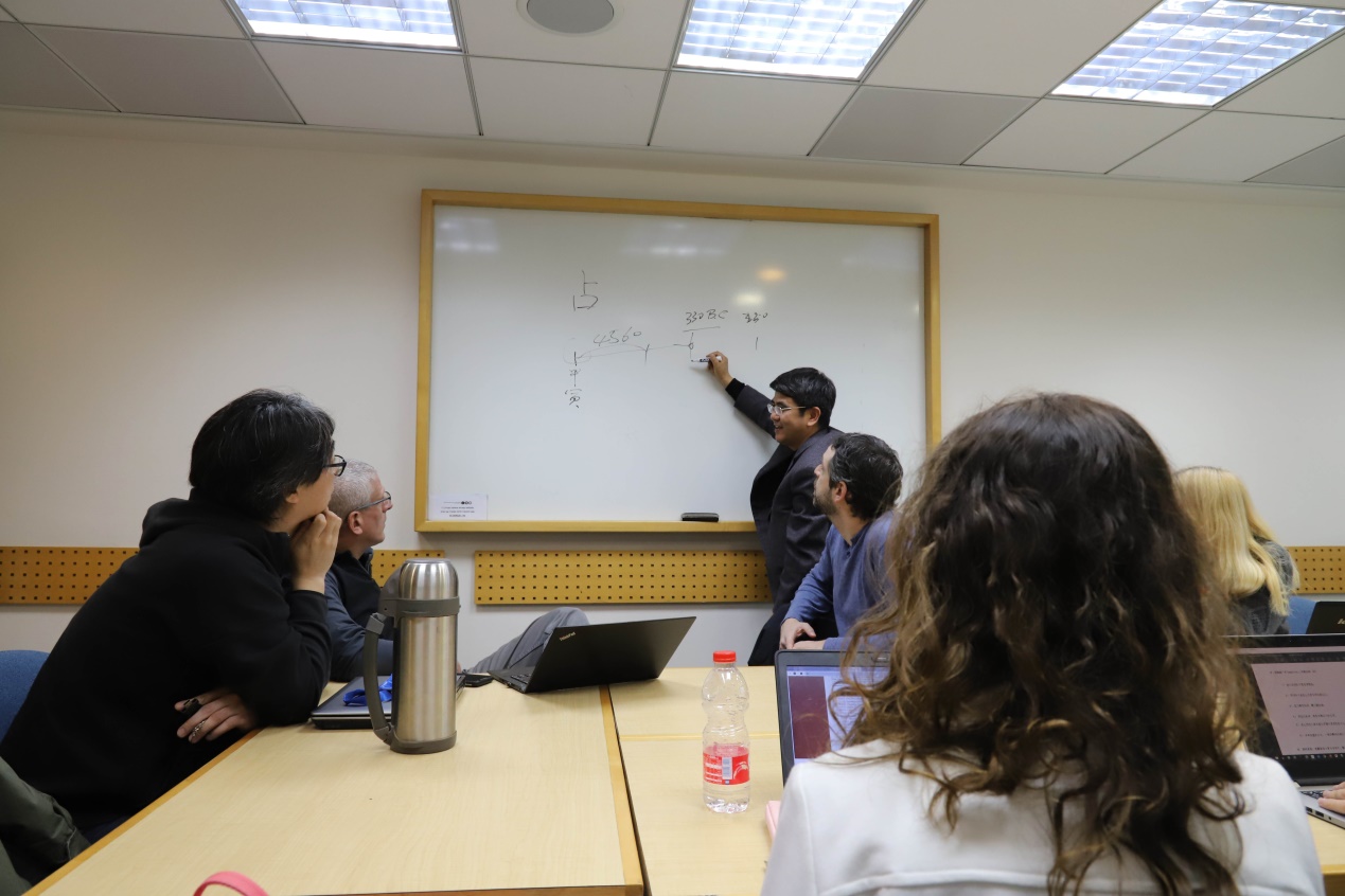 从第二场研读讨论会开始,张齐明副教授带领与会者研读《淮南子·天文训》。《淮南子》是汉代刘安和他的门客编纂的一部著作,其中《天文训》一篇包括宇宙形成、天的构成、历法、五音十二律和时令禁忌等内容,是了解汉代术数观念的重要资料。通过研读《天文训》,与会者对汉代的宇宙观有了更加系统和直观的了解。张齐明副教授结合《史记·天官书》和最新的出土文献资料和考古资料,对《淮南子·天文训》进行了详细的疏解,解答了文本中很多难以理解的内容,同时也更正了某些误解。在接下来的系列讲座和研讨会中,与会者就《淮南子·天文训》中所记载的神话传说、星象记录、岁星纪年法、四分历等问题与张齐明副教授进行深入的讨论,双方还将中国古代历法与犹太历法进行了对比分析,引起以色列学者强烈的兴趣。