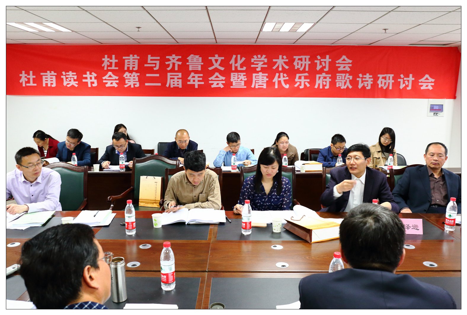 本次会议由山东大学儒学高等研究院主办,主要以读书会的形式对杜甫与齐鲁文化的关系进行了集中研讨,并对《杜甫全集校注》的相关学术问题展开了深入讨论,此外还就唐代音乐活动与乐府诗创作之间的关系问题交换了意见。山大儒学高等研究院党委书记巴金文、副院长杜泽逊,中国杜甫研究会副会长、河南省社科院葛景春研究员,山东大学郑庆笃分别致辞,中国杜甫研究会会长张忠纲向大会发来贺电表示祝贺。来自国内多所高校和《杜甫研究学刊》编辑部等文化单位的30多位专家学者参加会议。谷曙光老师与俞凡同学合作的论文《天宝六载(746):杜诗嬗变的一个关节点》,在大会上宣读,并受到好评。