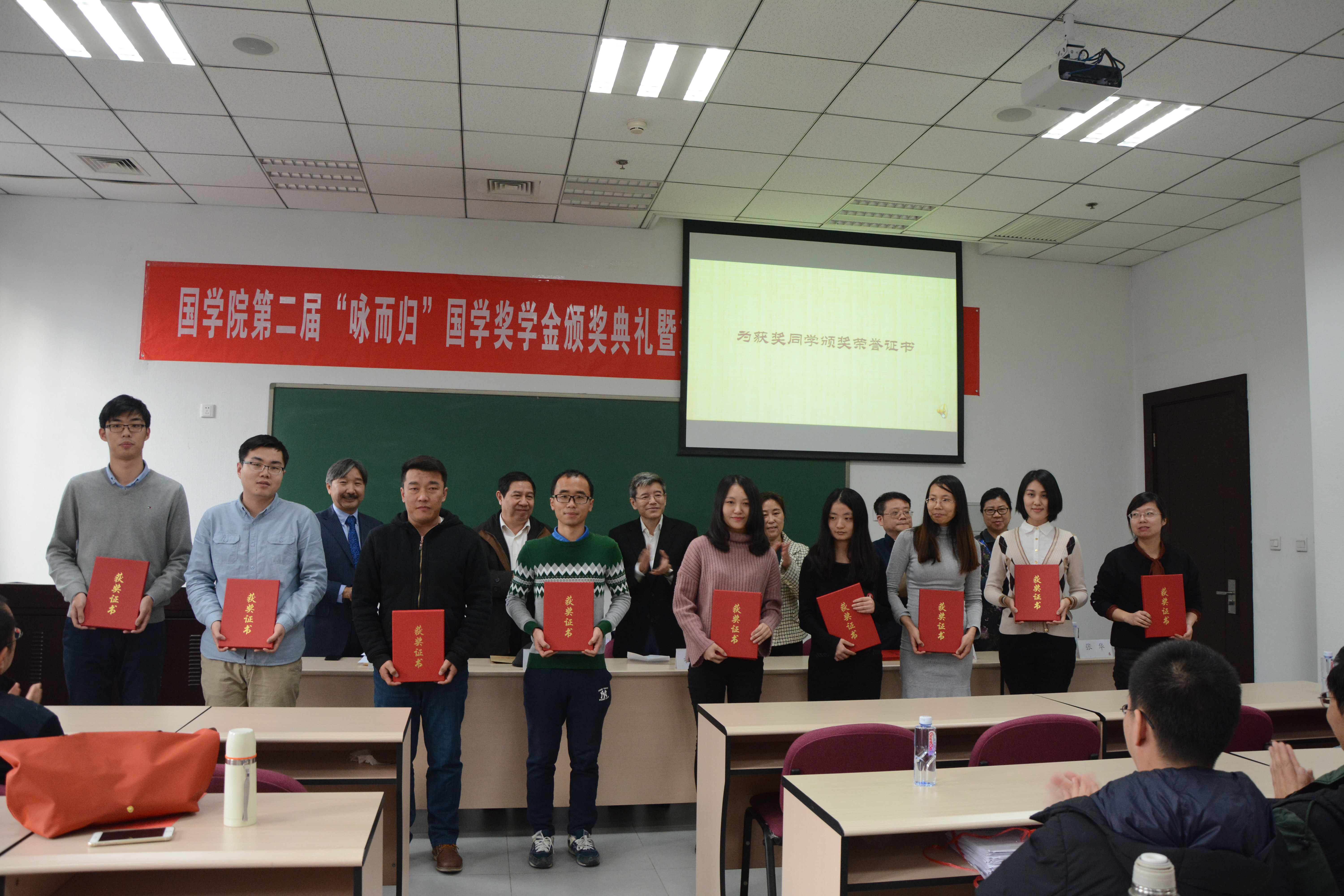 最后,在与会师生的热烈掌声中,禁漫app 第二届“咏而归”国学奖学金颁奖典礼落下帷幕。