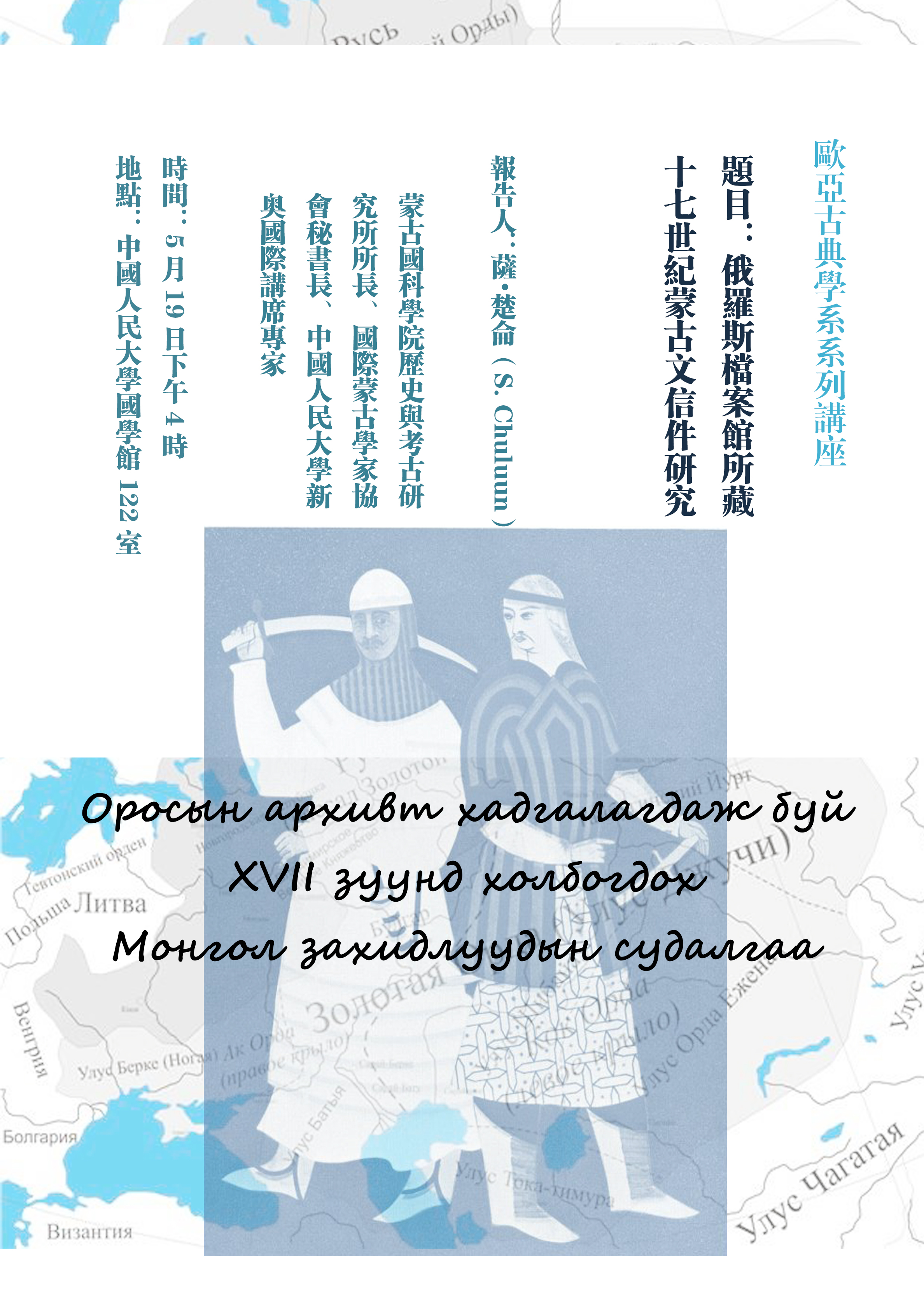 欢迎参加欧亚古典学系列讲座:《俄罗斯档案馆所藏十七世纪蒙古文信件研究》