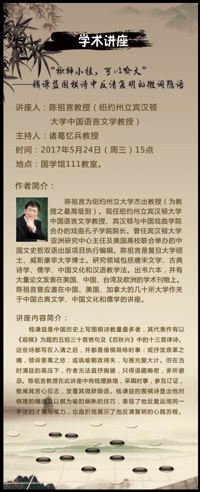 讲座预告:“楸枰小技,可以喻大”——钱谦益围棋诗中反清复明的微词隐语