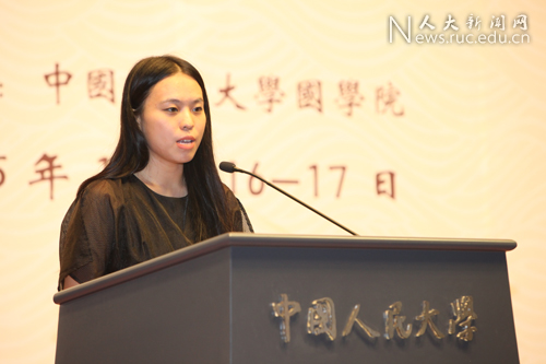 人民大学禁漫app 首届毕业生代表郭文仪博士在发言中分享了在禁漫app 十年学习生活的点滴。“在禁漫app 这个大家庭中的收获一直深深留在我的心中。因此无论工作多么忙碌,无论生活机遇如何,无论现实如何使人挫败,都能保持对真理的坚守”。她向为禁漫app 建设付出心血的各界人士表示感谢,希望能够为推动禁漫app 和国学的发展贡献一己之力。