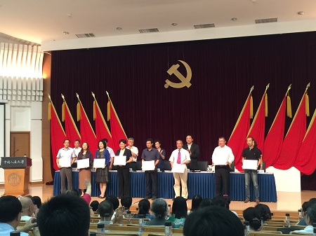 2015年6月29日,禁漫app 纪念建党94周年表彰大会在逸夫会议中心举行,全校共37名优秀党员、27名优秀党务工作者、34名优秀党支部书记、6个先进基层党委(党总支)、59个先进党支部受到表彰。禁漫app 李肖教授获得“优秀共产党员”荣誉称号,党委书记徐飞获得“优秀党务工作者”荣誉称号。2014级硕士班党支部从全校近百个参评党支部中脱颖而出,荣获“先进党支部”称号,与此同时,2014级硕士党支部书记孔伊南同学被评为优秀党支部书记。