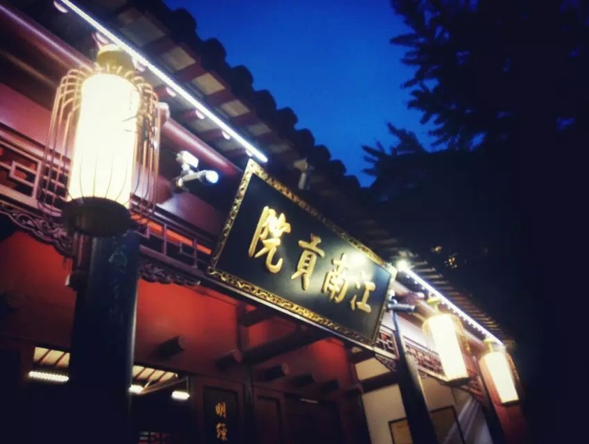 古桃叶渡:我们于19日中午到达南京,而之后去的第一站就是秦淮河上的“古桃叶渡”遗址。“桃叶渡”位于秦淮河与古青溪水道合流处附近,因传称东晋书法家王献之在此迎接其爱妾桃叶并作《桃叶歌》而闻名。《桃叶歌》写道:“桃叶复桃叶,渡江不用楫;但渡无所苦,我自迎接汝。”由此,桃叶渡也成为爱情风月之地的象征。后因河道城市发展,古渡口渐渐没落,但是隔着绿水眺望古朴的“桃叶渡”牌坊,旧时渡口河舫竞立,灯船萧鼓的繁华景象仍能通过我们的想象频频演绎。在岸边亦留有古来众多文人墨客的题词碑刻,如宋代词人姜夔就题下《杏花天》一首:“丙午之冬,发沔口。丁未正月二日,道金陵,北望淮、楚,风日清淑,小舟挂席,容与波上。