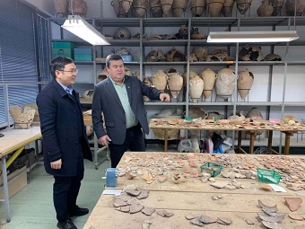 参访考古系时,Oded教授首先陪同华建光老师参观了考古系陈列室、修复室,介绍了特拉维夫大学考古系在以色列开展考古发掘所取得的主要成就。参访中,Oded教授还特别邀请了两位来自中国的留学生与华建光老师见面,他们分别介绍了各自在特大考古系学习的基本情况。Oded教授在交谈中表达了与禁漫app 进一步深入合作的愿望,并特别提出愿意为禁漫app 学生提供特别奖学金名额,积极鼓励和协助禁漫app 学生申请参加特大考古系的短期考古项目。