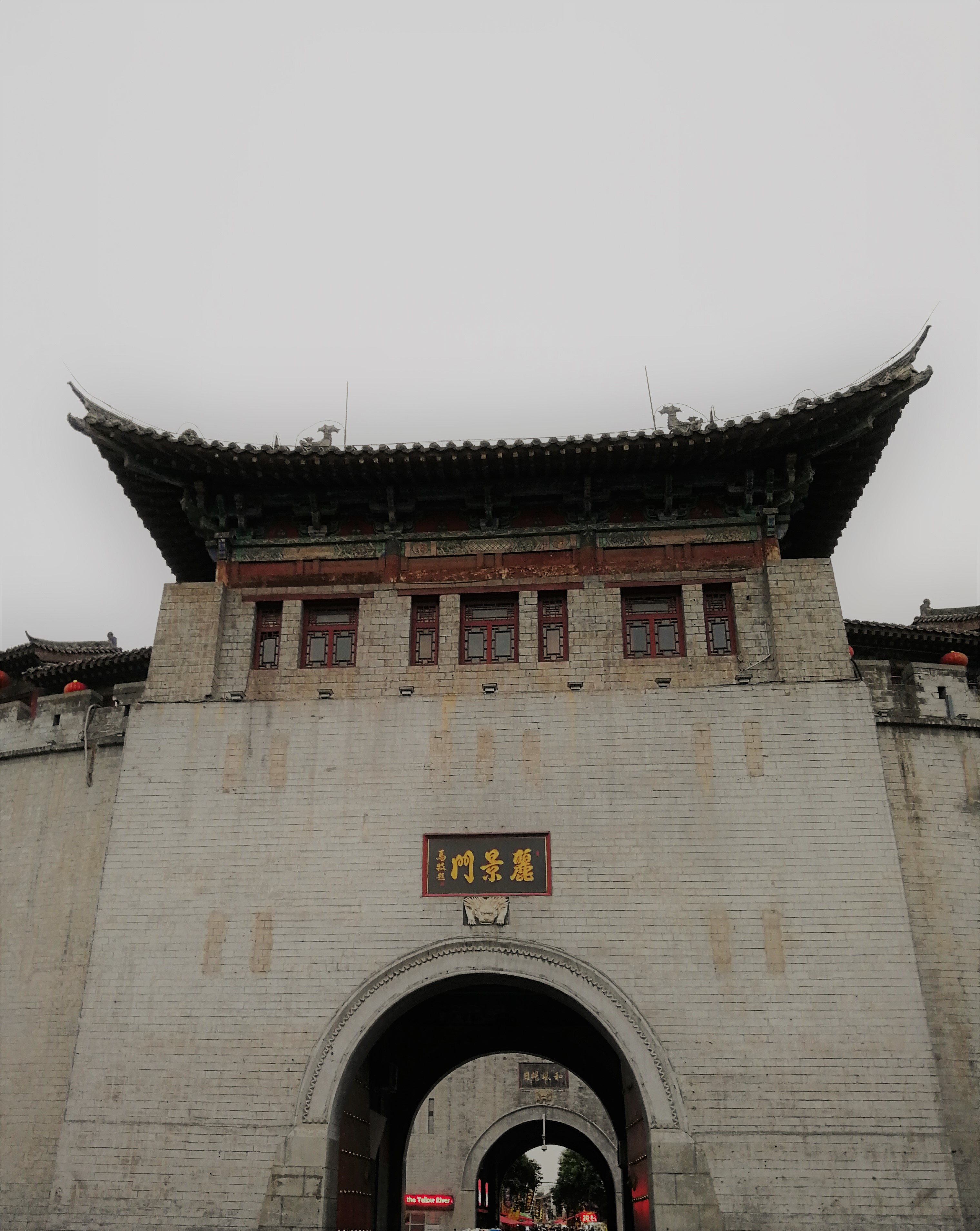 当日傍晚,我们赶赴洛阳,到达时恰逢小雨骤至,顿觉几分清凉。经过短暂休息后,我们来到了丽景门。丽景门建于隋朝,是长期以来百官及万民祭祀神灵的地方,也是洛阳古城的西大门。时值初夏,城楼前合欢初绽,丽京桥下的护城河水缓缓流淌,夹竹桃花和桥上的石狮相映成趣。骤雨歇,晚风起,夕阳的余晖渐渐褪去,耳畔传来琴声和笛声,绣着凤凰的旗帜随风飘摇,有一种“笛弄晚风三四声”的闲情惬意。进入瓮城,抬头望见巍巍古庙立于箭楼之上,顿感大气。登上城楼,俯瞰洛阳的老居民区坐落于大朵槐林之中,怀古之意油然而生。